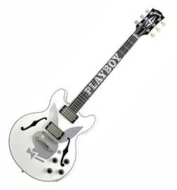 Auch das populäre Hochglanzmagazin "Playboy" bekam schon des Öfteren eine Sonderanfertigung aus dem Custom Shop. In der hier abgebildeten eleganten ES-356 Playboy werden Luxus, Eleganz und Rock'n'Roll auf eine Art vermischt, die Sammlern und Playboys den Blick kleiner Kinder vor dem Weihnachtsbaum ins Gesicht schreibt. Manchmal hat der deutsche GibsonVertrieb M&T in Marburg eines dieser besonderen und überaus begehrten Stücke auf Lager. Ein kurzer Anruf bei M&T lohnt sich immer auf der Suche nach ausgefallenen Stücken und limitierten Sondermodellen. Nähere Informationen gibt es beim deutschen Vertrieb: M&T, Musik & Technik GmbH |