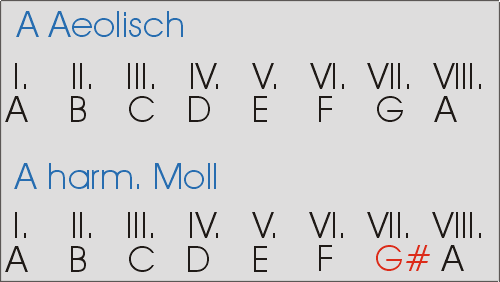 Das "G#" sorgt dafür, dass sich auf der V.Stufe der harmonischen Moll-Tonleiter ab sofort kein Moll7 Akkord mehr befindet, sondern ein lupenreiner Dominant-Sept Akkord - hier namentlich ein saftiger E7er. |